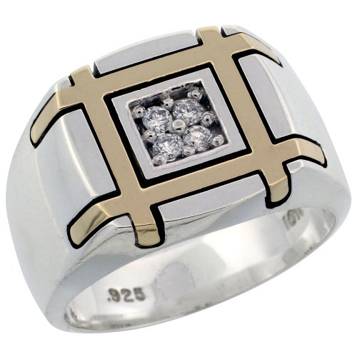 | Post Date : Apr 19, 2012 08:11:27 | Usually ships in 1-2 business daysThis Masculine Ring is crafted from Solid Sterling Silver and accented with Real 10 Karat Gold. This high quality piece of jewelry has Unbelievably Great Weight and has Outstanding Finish. It's set with Round Brilliant Cut (Clean & White) H Color & VS Clarity Diamonds. Sizes are available from 10 to 12 (Including Half Sizes), and they're readily selectable from the drop-down menu. Smaller or Larger Sizes may also be available for a nominal fee. Please feel free to contact us for any inquiries.